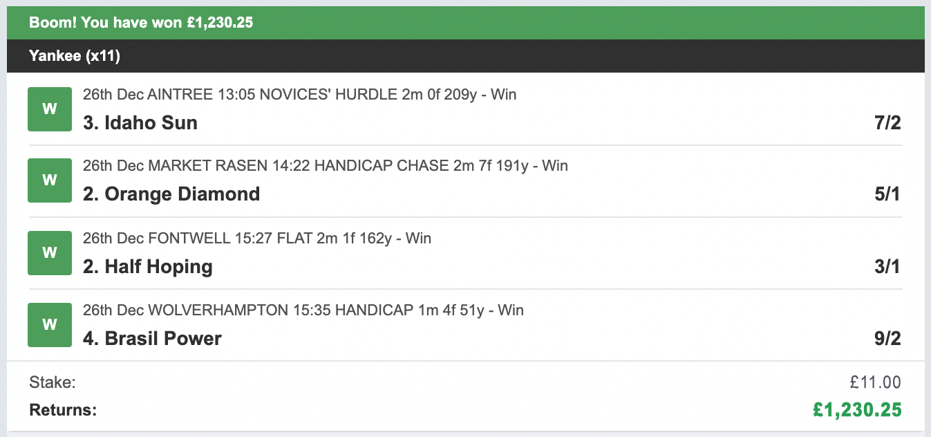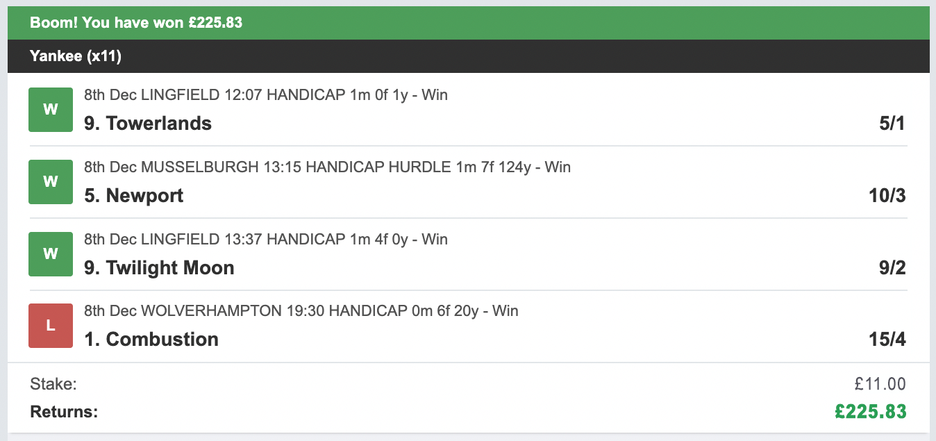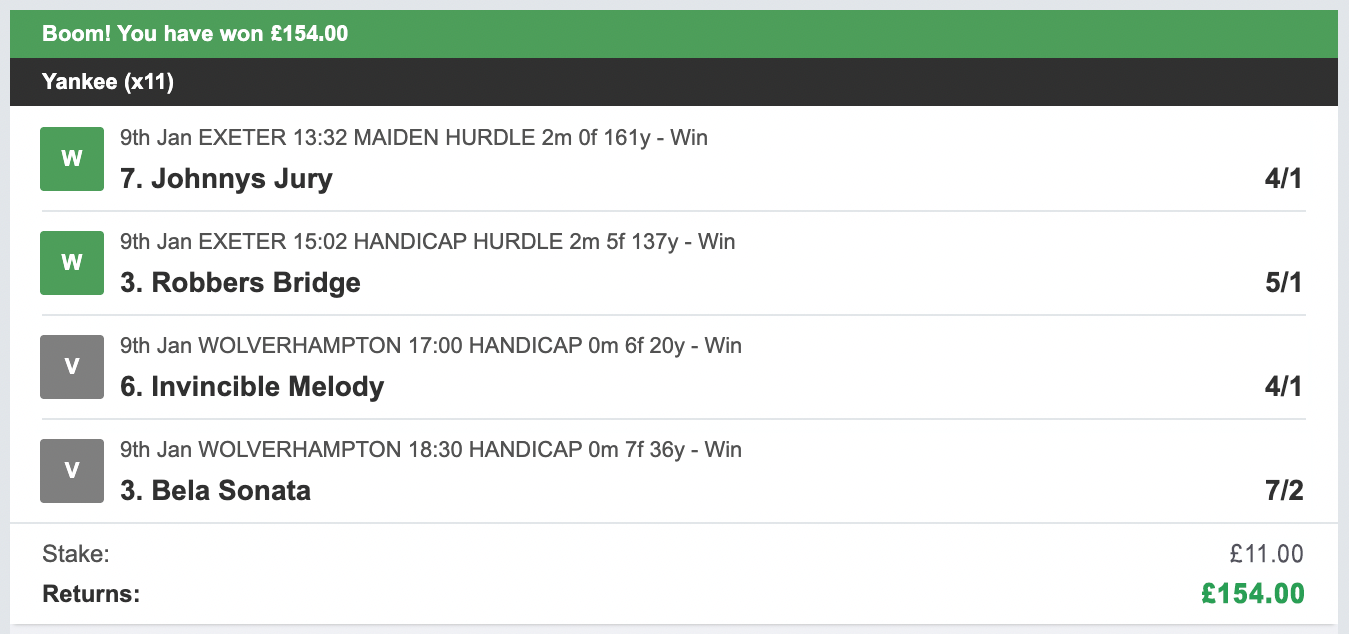 - All bets are placed in a way so we can maximise our 4 daily stakes.