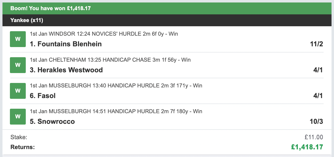 - All bets are placed in a way so we can maximise our 4 daily stakes.